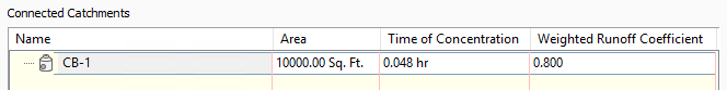 If no catchments are connected to the structure, you can enter catchment values directly into the Area, Time of Concentration and Weighted Runoff Coefficient fields.