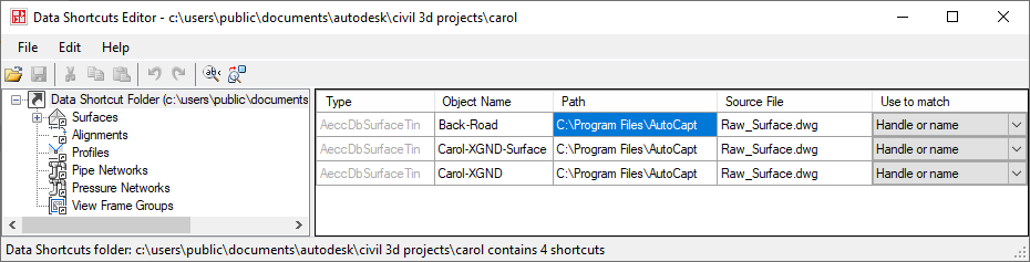 The Data Shortcuts Editor is a stand-alone application that you can use to edit multiple shortcut XML files safely and efficiently. For example, if you move an entire project from one working folder to another, you can use the Data Shortcuts Editor to update the paths to the data shortcut objects.