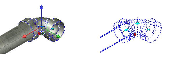 This grip enables you to slide a bend along the pressure pipe. A diamond-shaped grip is located at the port connected to the pressure pipe. The resulting effect is that the pressure pipe lengthens or shortens, according to the bend’s new location.
