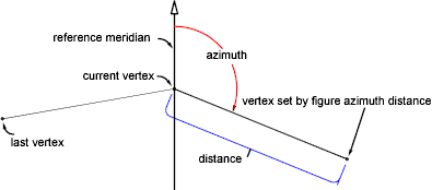 | distance | The distance from the current vertex in the figure to the new vertex. Enter this value in the current survey database distance units. |