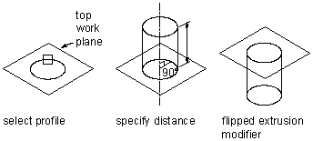 A blind extrusion sweeps a profile a specified distance along its normal, or perpendicular axis. You can flip the extrusion to sweep the profile in the opposite direction as the default normal.