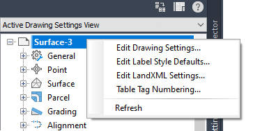 Edit label settings at the Drawing level, object level (such as Surface), and label-style-type level (such as Contour)