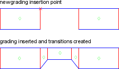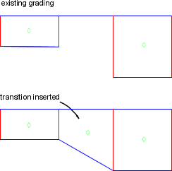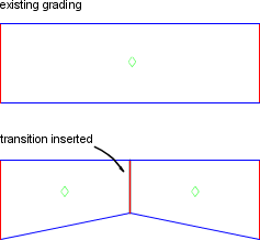In addition, you are sometimes prompted to create transitions when you use the Create Grading command. This occurs when the start point of a new grading is inside or touching an existing grading.