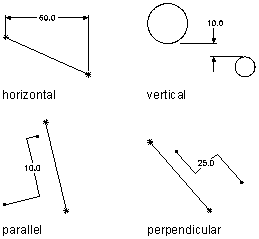 Can be defined for pairs of geometry of all types. Defines a value between two features. The value of a distance dimension cannot be negative. When adding distance dimensions between two lines, it is implied that the lines are parallel with a given separation.