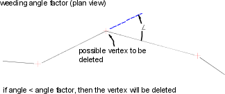 Reduces the number of vertices generated along the best fit element. The weeding factor ignores vertices that deflect less than the Angle Tolerance. A larger deflection angle weeds a greater number of points. The Angle Tolerance is measured in angular units. The Angle Tolerance must be less than the supplementing Distance.