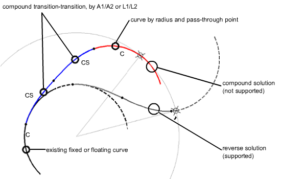Add a floating reverse curve with transitions in situations where you need two back-to-back reverse transition transitions and the curve geometry must pass through a specified point.