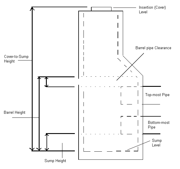 Sump and sump depth. Sump refers to the bottom area or chamber on the inside of a junction structure, such as a gully. The sump area is sometimes used as a reservoir to catch debris. Sump depth refers to the distance from the bottom of the inside of the structure to the lowest invert of all pipes connected to it. The sump depth for a particular type of structure can vary according to design requirements. Manholes typically have no sump depth.
