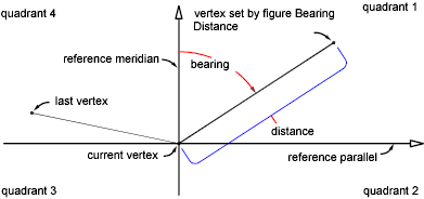 The following illustrates the Figure Quadrant Bearing Distance command: