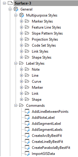 The General Label Styles are used by lines, curves, feature lines, and corridors. This collection also contains Note label styles, which are not specific to an object.