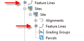 When a feature line is not dynamically linked to a corridor, it can be edited with any of the feature line editing commands.