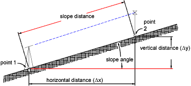 The following illustration shows the Slope Distance command: