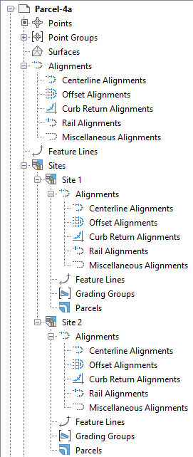 - The Alignments collection within a topology collection, or site. When placed here, alignments will interact with other alignments and plots on the site. If you want alignments to form plots by closed regions but not subdivide existing plots, assign alignments and plots to separate sites.