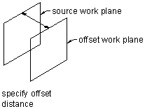 Creates a work plane that is offset by a specified distance from a selected source work plane. For more information, see Offset Work Planes below.