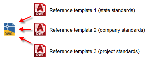 You can have multiple reference templates attached to a drawing. For example, you might have templates for state, company and project standards: