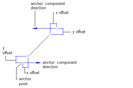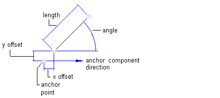- Start Point, Length, and Angle: Use this method to anchor the start point of the line component to the anchor component. Then, specify the length and angle. The following illustration shows a line defined using this method:
