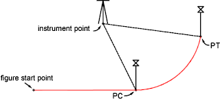 Specify that the next shot is a Point of Curvature (PC) in the current figure. The shot immediately following the next shot is on the Tangent Point (TP). This command creates a straight arc from the last leg in the figure.