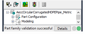Upon successful completion of these procedures, the part is validated and the status bar is updated with a message indicating if the part validation is successful.
