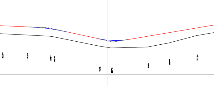 The labels show the elevational difference from the best fit profile to the input data (entities).