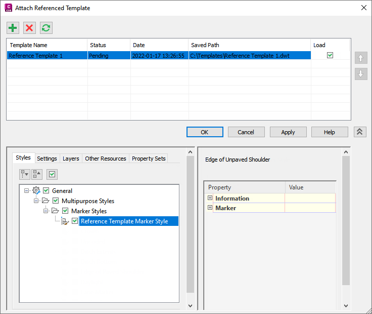 Select the tick boxes for the styles and settings that you want to be referenced by default. In the following example, only the Reference Template Marker Style is selected.