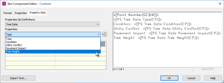 For example, you may have custom property information assigned to points such as tree species type, condition and other data.