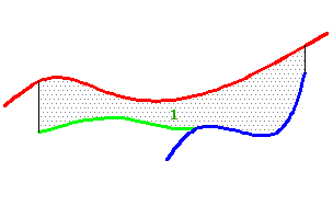 To calculate volumes for this situation, Autodesk Civil 3D adds vertical links (numbers 1–2) to create closed envelopes as shown in the following illustration.