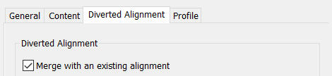 Likewise, on the Profile tab, you can select an option to merge the diverted alignment's profile with an existing profile.
