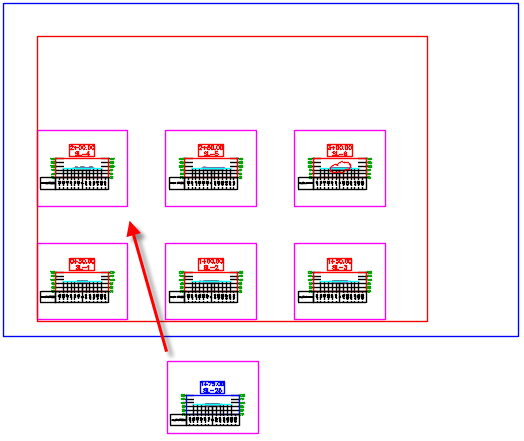 In the following example, an individual section SL-25 needs to be moved into the section view group. Its chainage is 1+75 so it will be inserted between the sections for chainage 1+50 and 2+00.