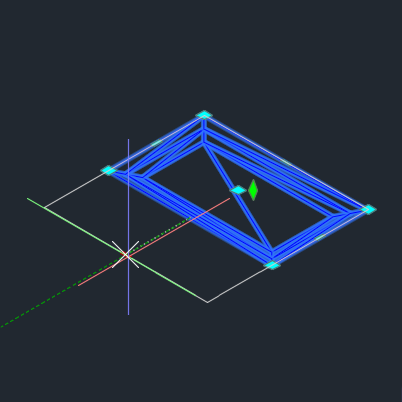 The green diamond grip in the centre of the pond adjusts the elevation or vertical offset of the pond. Place the cursor over the grip to select either Level or Offset. Movement of this grip is locked to the z-axis.