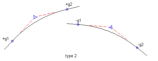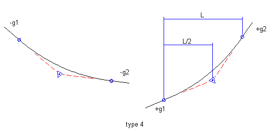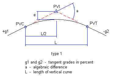 Layout profiles use two types of curves: crest curves and sag curves. Crest curves are placed on hilltops or wherever the gradient changes to a lesser value. There are three types of crest curves: a positive to negative gradient transition, positive to positive, and negative to negative: