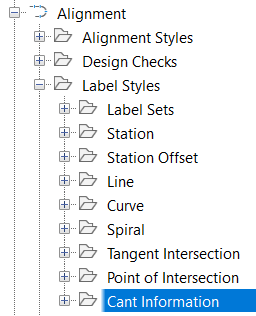 Cant Information label styles are available in the Alignment Label Styles collection: