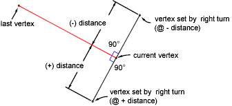 Define left and right turns, creating square sides on your figure. This is useful when drafting building footprints. At least two vertices must exist in the current figure for this command to work properly.