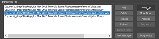 The files display as a list in the Input Files group. While it is not mandatory, it can be helpful to place the files in the order in which their sounds are heard in the sound track.