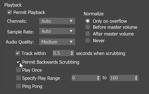 By default, the audio plays forward as you play the animation forward: There is no audio when you scrub animation in reverse.
