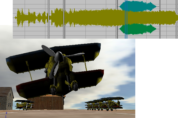 The scene shows a World War One airfield somewhere in the north of France. A biplane is poised for takeoff, but it has no sound. Your task is to take a group of four .wav files and assemble them so that they play back as the plane rolls down the runway and takes to the sky.
