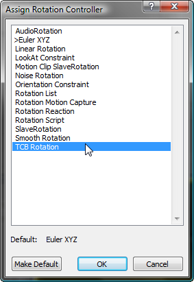 - On the Assign Controller dialog, click TCB Rotation, then click OK.