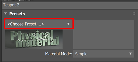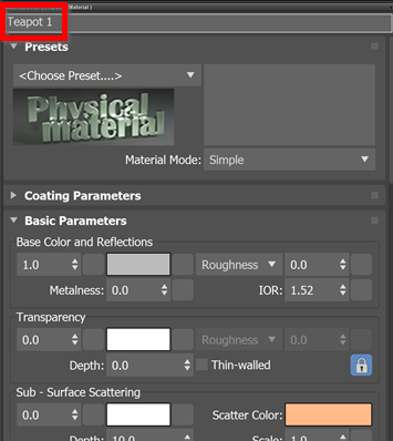 The Teapot now has color, with a non-reflective exterior. Feel free to adjust the other settings on the Physical Material options to experiment with the other things you can do, like make the teapot transparent, or metallic.
