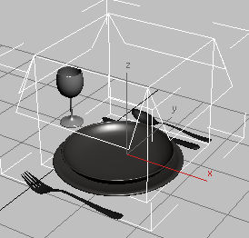 This command adds a new container to the scene and then places the selected objects in the container. The container appears in the viewports as a wireframe box with the lid flaps open. The box’s position is calculated from the average of the selected objects’ locations.