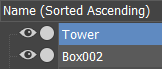 This aligns the box you just created to the center of the Tower object, as shown in the next illustration.