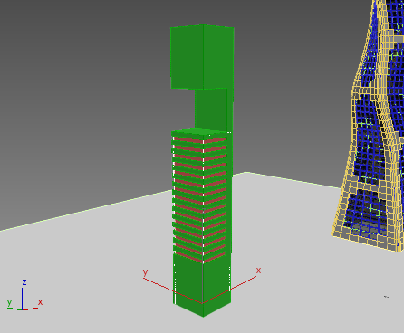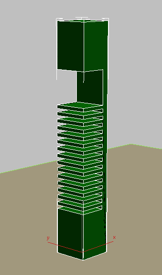 Next, you need to introduce recessed glazing to the first 15 floors created by the Boolean subtraction.