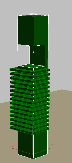 The next Boolean operation joins the newly-created box object to the Tower object.