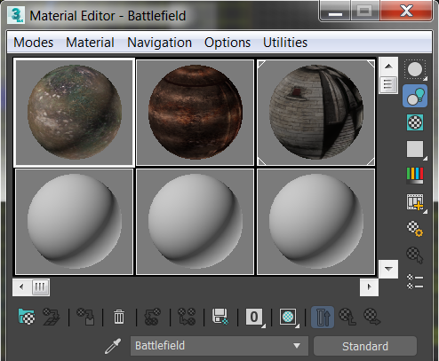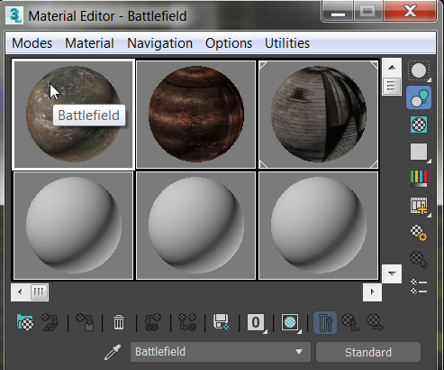 Notice that the name Battlefield appears in the Material Name field below the sample slots.