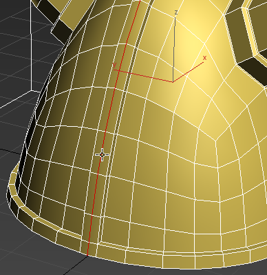 Click a vertical edge along the middle seam of the helmet ridge.