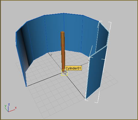 - In the Perspective viewport, move your cursor over the cylinder in the center.
