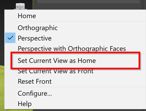 - In the Perspective viewport, right-click the ViewCube and choose Set Current View As Home.