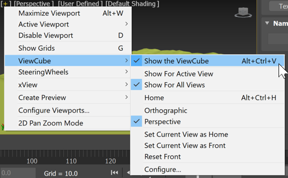 Depending on how 3ds Max is currently set up, the ViewCube controls might be visible in the upper-right corners of the viewports.