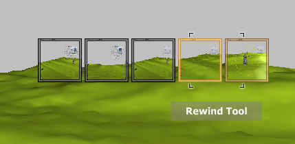 The Rewind tool passes over a strip of thumbnails, each of which represents a previously selected navigation point. Release the mouse on any thumbnail. The viewport rewinds to that point.