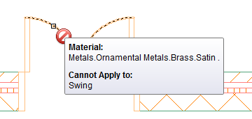 If a component does not support materials in the current view direction, does not support materials at all, or is in an xref, the tooltip informs you the material cannot be applied, and the cursor changes to a slashed red circle until you move it off that component.