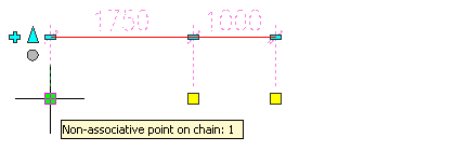 You can create non-associative dimensions from points you pick anywhere in the drawing. For each point you pick, a location point is generated and dimensioned. If the point is used to dimension an object, and the object is moved, the non-associative point is not updated. You have to manually move the non-associative point to reflect the change.
