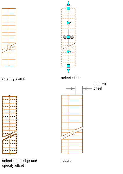 Note: If you change the width of the stair after offsetting a side, the offset changes are lost.