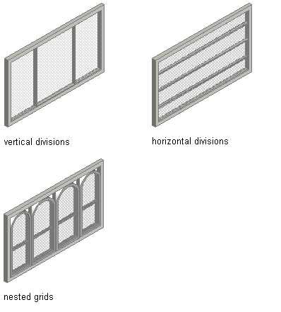 Door and window assemblies are made up of 1 or more grids. Each grid has either a horizontal division or a vertical division, but you can nest the grids to create a variety of patterns from simple to complex.